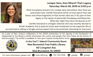 A presentation about the legacy of Lenape, presented as part of the library's celebration of the 250th anniversary of the signing of the Declaration of Independence.