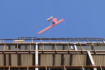 A host of dignitaries participate in the topping-off ceremony for the 12-story, 520,000 sq. ft. transformative center